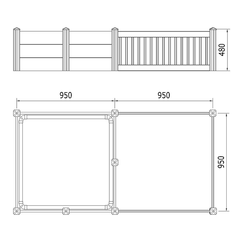 | Picket | 0.5 "x 1.6" x17.8 '' |
