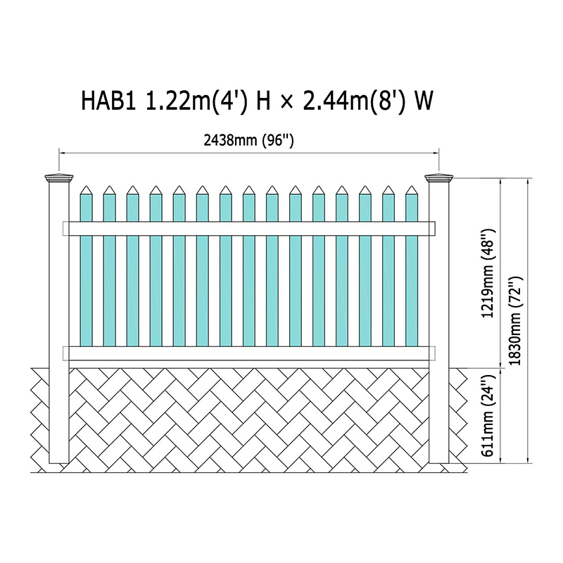 | Picket | 7/8 "x 3" x 39 '' x 15pcs (karaniwang spacing) |