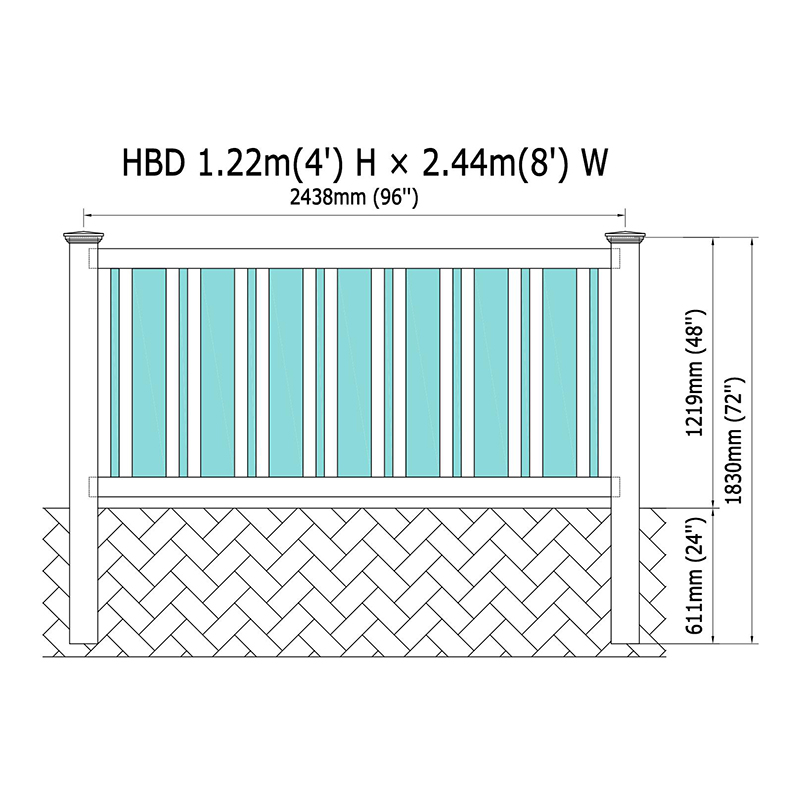 | Top style ng bakod | PVC 7/8 "x6" picket rail bakod |
