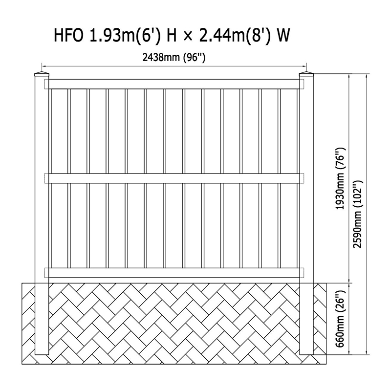 | Picket | 7/8 "x 6" x 68 '' x 13pcs (karaniwang spacing) |